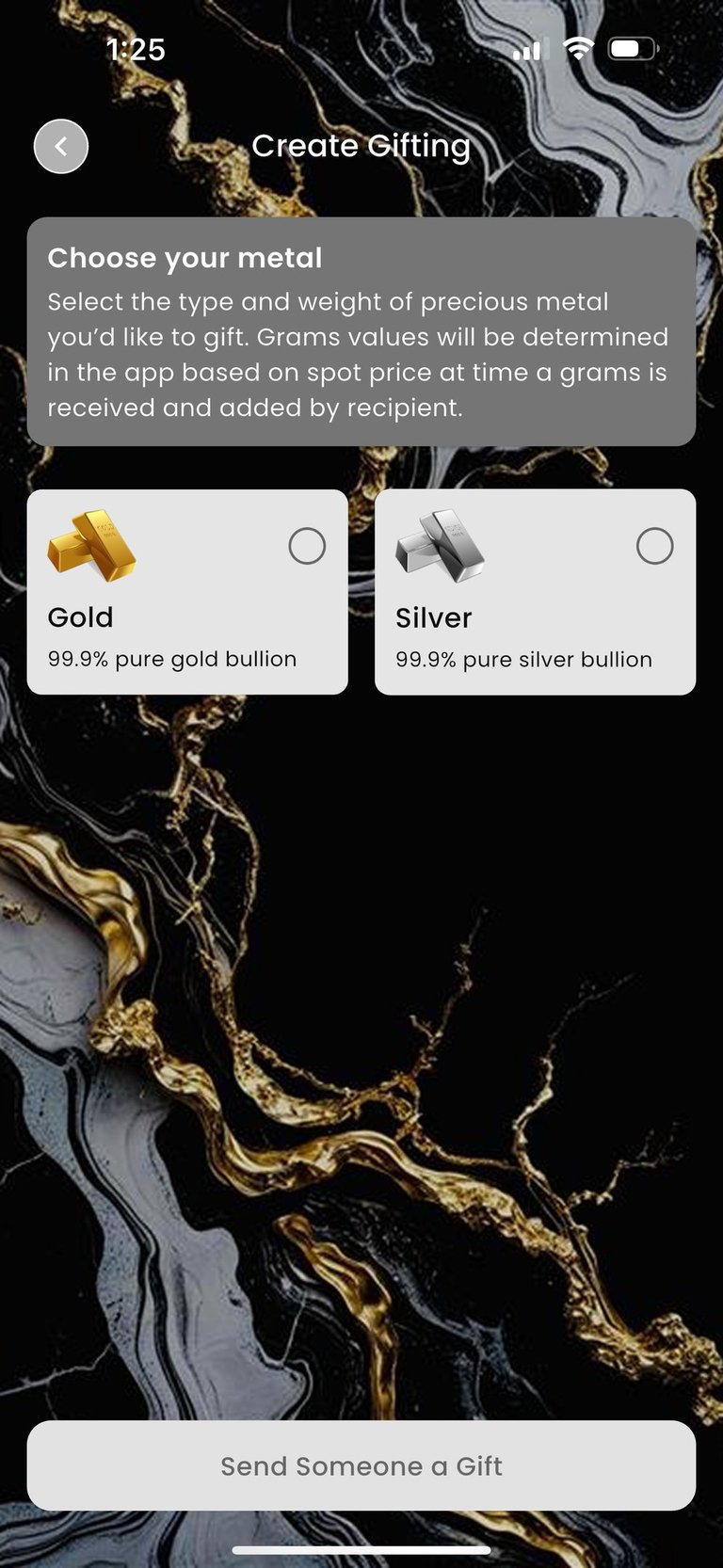 We make gifting meaningful and easy by removing the pressure of finding the perfect item every time. Send real gold or silver instantly through the app.
